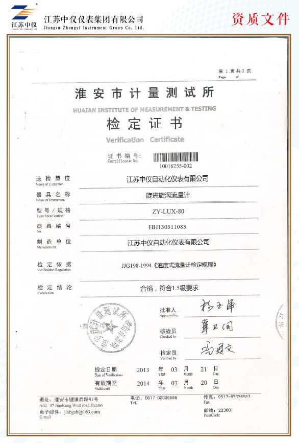 2 | 江蘇中儀大口徑管道的液體流量測量 | [] |